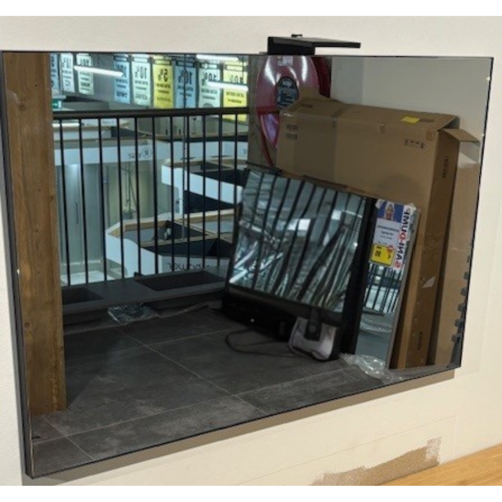 Detremmerie spiegel 100 x 70 cm zwart kader met opbouw lamp mat zwart. Diepte 3 cm.