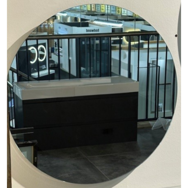 Spiegel ø70cm op frame zonder verlichting. Diepte 3 cm.