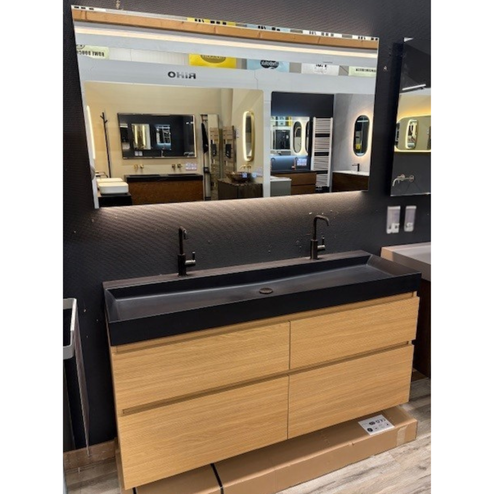 Thebalux Beat 45 140x45 cm meubelset 4x lade hudson oak incl. spiegel met led, dimbaar, kleurwissel en verwarming (excluief kranen). Diepte 45 cm.